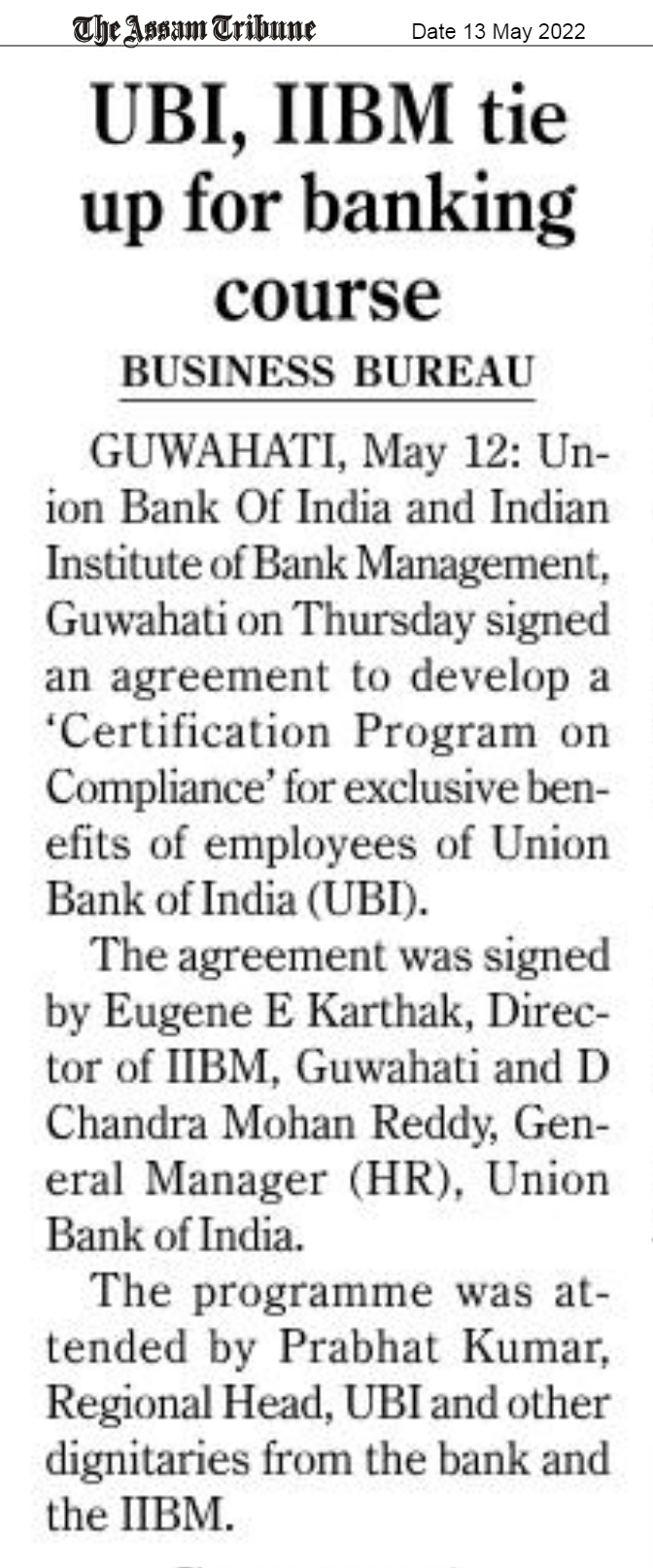 UBI, IIBM tie up for Banking Course